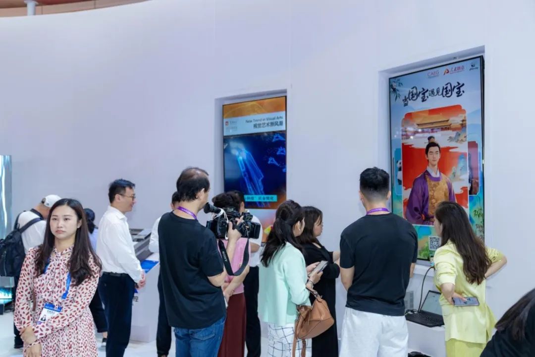 在文化与科技融合展区点赢通,观众们在科技感十足的VR/AR眼镜、智能无人机设备以及极具游戏性的交互式透明玻璃屏幕面前纷纷停下脚步,沉浸式体验科技创新与文化视觉艺术深度融合带来的奇妙感受。